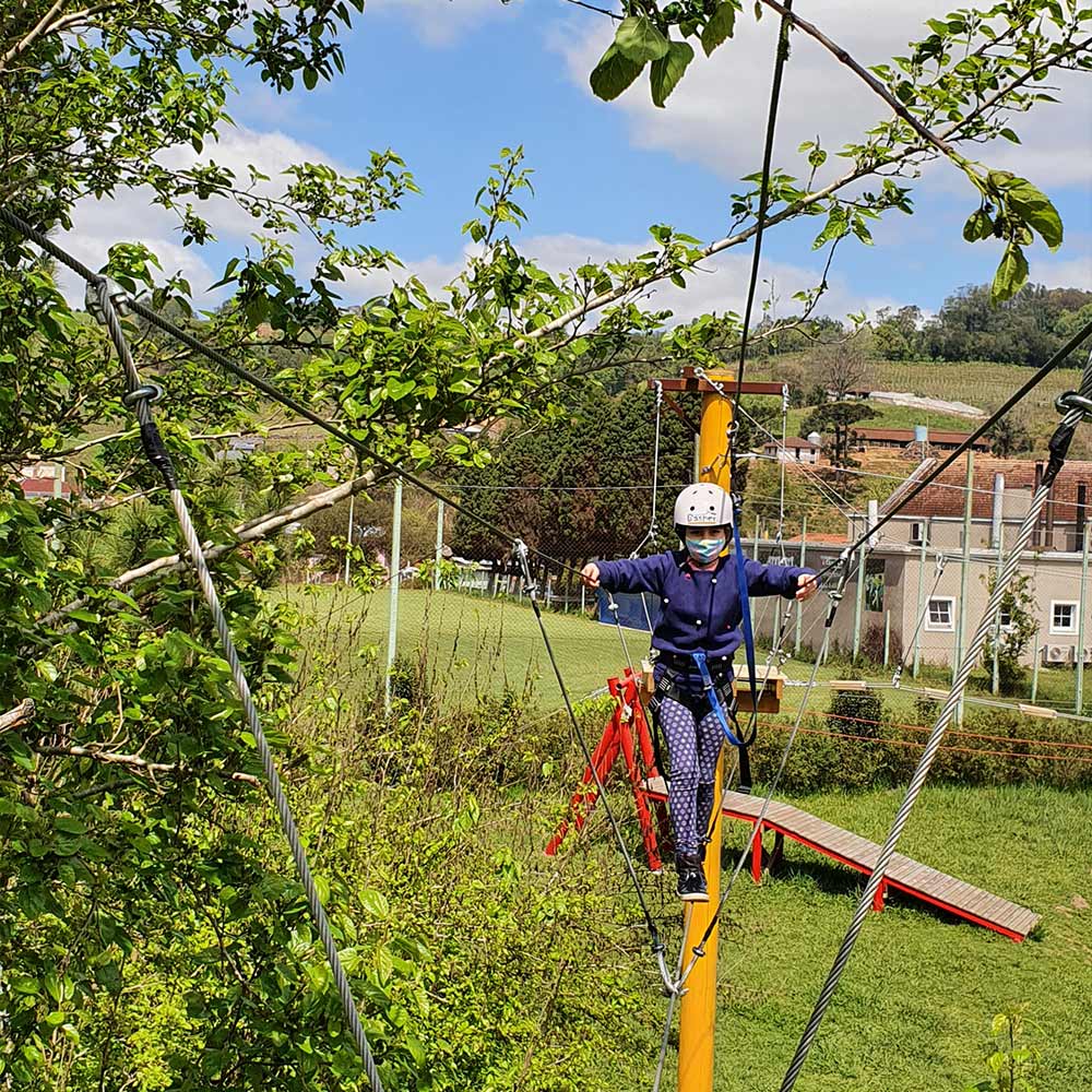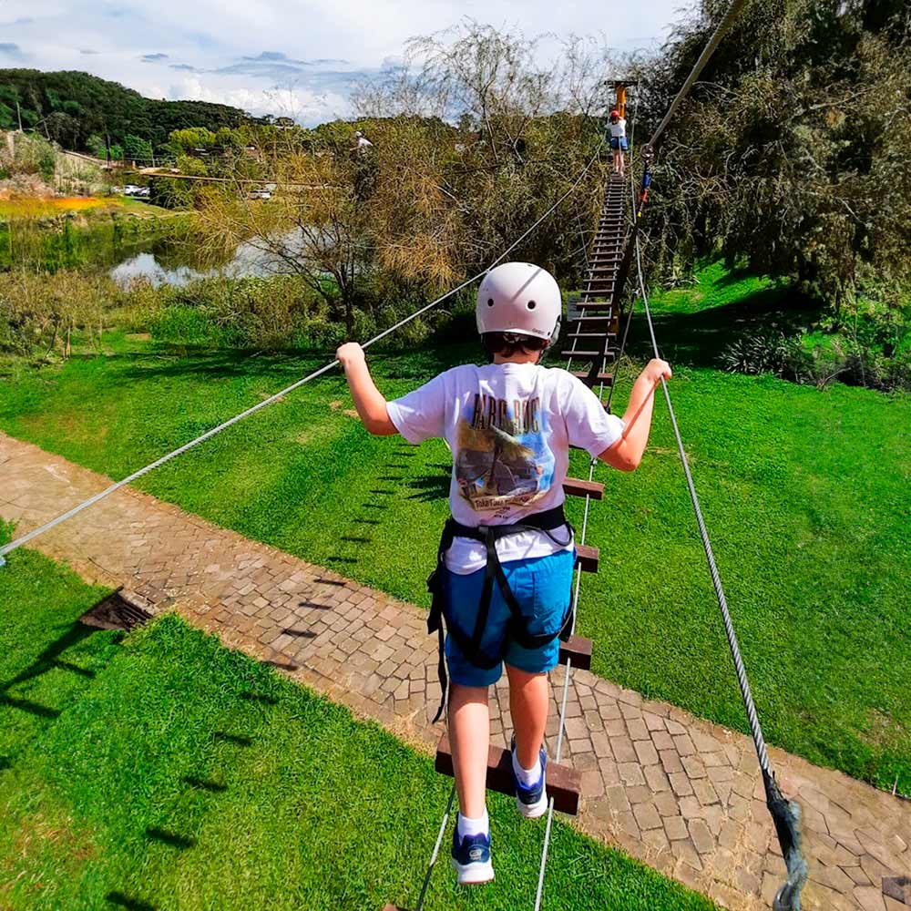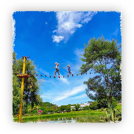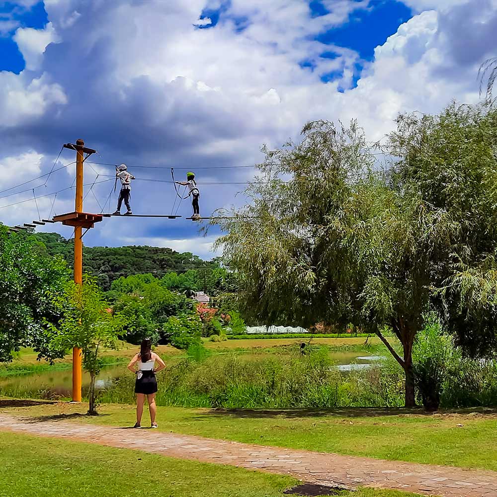 Que tal desafiar suas habilidades de equilíbrio e coragem? Então experimente o arvorismo! Equilibre-se entre as copas das árvores em uma série de pontes e obstáculos suspensos que oferecem uma perspectiva única da natureza exuberante que nos rodeia. Sinta a brisa suave enquanto atravessa essa trilha no alto das árvores e teste sua destreza em um ambiente seguro e emocionante. Venha explorar as alturas e criar memórias inesquecíveis no Parque Gasper Vale dos Vinhedos!