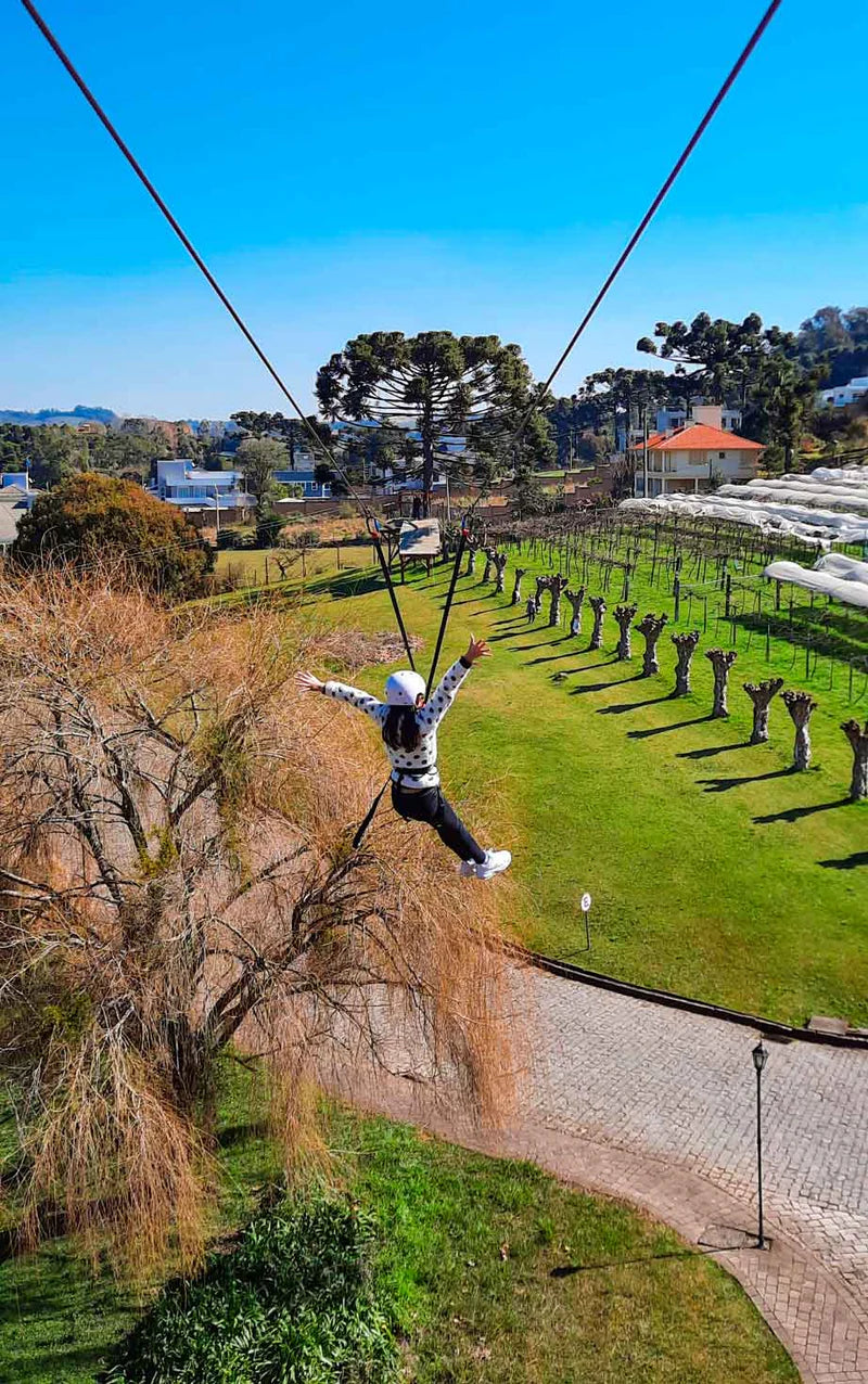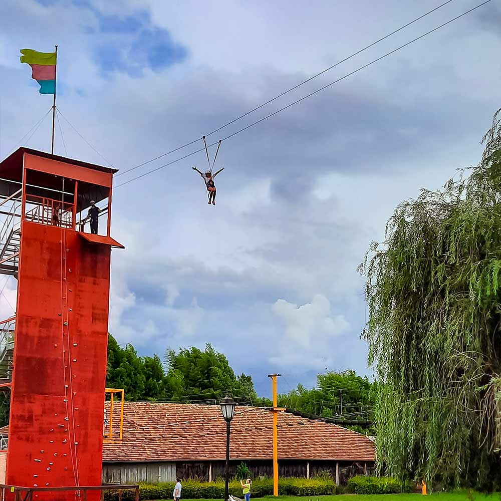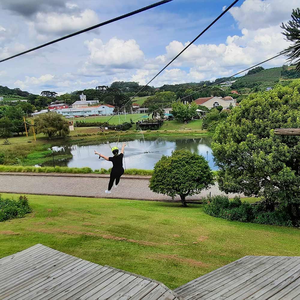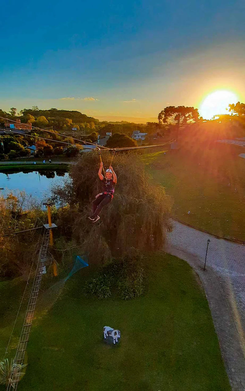 Você está pronto para uma tirolesa emocionante no coração do Vale dos Vinhedos? Experimente a sensação de “voar” em nossa tirolesa. Sinta a adrenalina enquanto desliza sobre as copas das árvores e um lago, desfrutando das vistas panorâmicas das vinhas e montanhas. Seja corajoso, desafie-se e crie memórias inesquecíveis. Junte-se a nós no Parque Gasper Vale dos Vinhedos e deixe a emoção te levar!